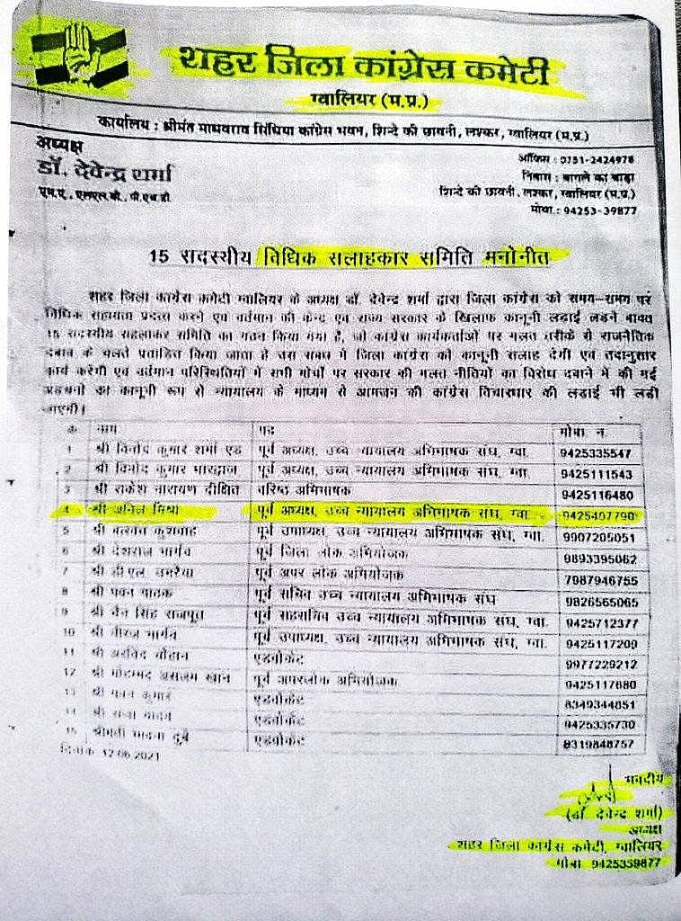 द मूकनायक द्वारा की गई पड़ताल में, कांग्रेस के प्रदेश संगठन महासचिव संजय कामले ने बताया कि “कांग्रेस की विधिक सलाहकार समिति पूर्व में भंग की जा चुकी है।”
