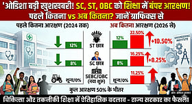 भुवनेश्वर: ओडिशा में चिकित्सा और तकनीकी शिक्षा में छात्रों को अब ज्यादा आरक्षण मिलेगा। राज्य सरकार ने मेडिकल और इंजीनियरिंग पाठ्यक्रमों में एससी, एसटी छात्रों के लिए आरक्षण बढ़ाने का बड़ा फैसला लिया है। साथ ही ओबीसी (एसईबीसी) स्टूडेंट्स को भी 11.25 फीसदी रिजर्वेशन दिया जाएगा।